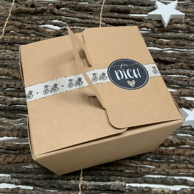 wir haben jede Menge leere Käseschachteln, Glacébecher, Hamburgerboxen, Pommefriteböxli und anderes verwendet, um ein kleines Weihnachts- oder Neujahrsgeschenk darin zu verpacken. lass dich bei uns inspirieren und mach es Zuhause nach . wenn du keine Zeit hast, kannst du im Zaubertor ein fertiges auswählen und gleich verschenken ;-)